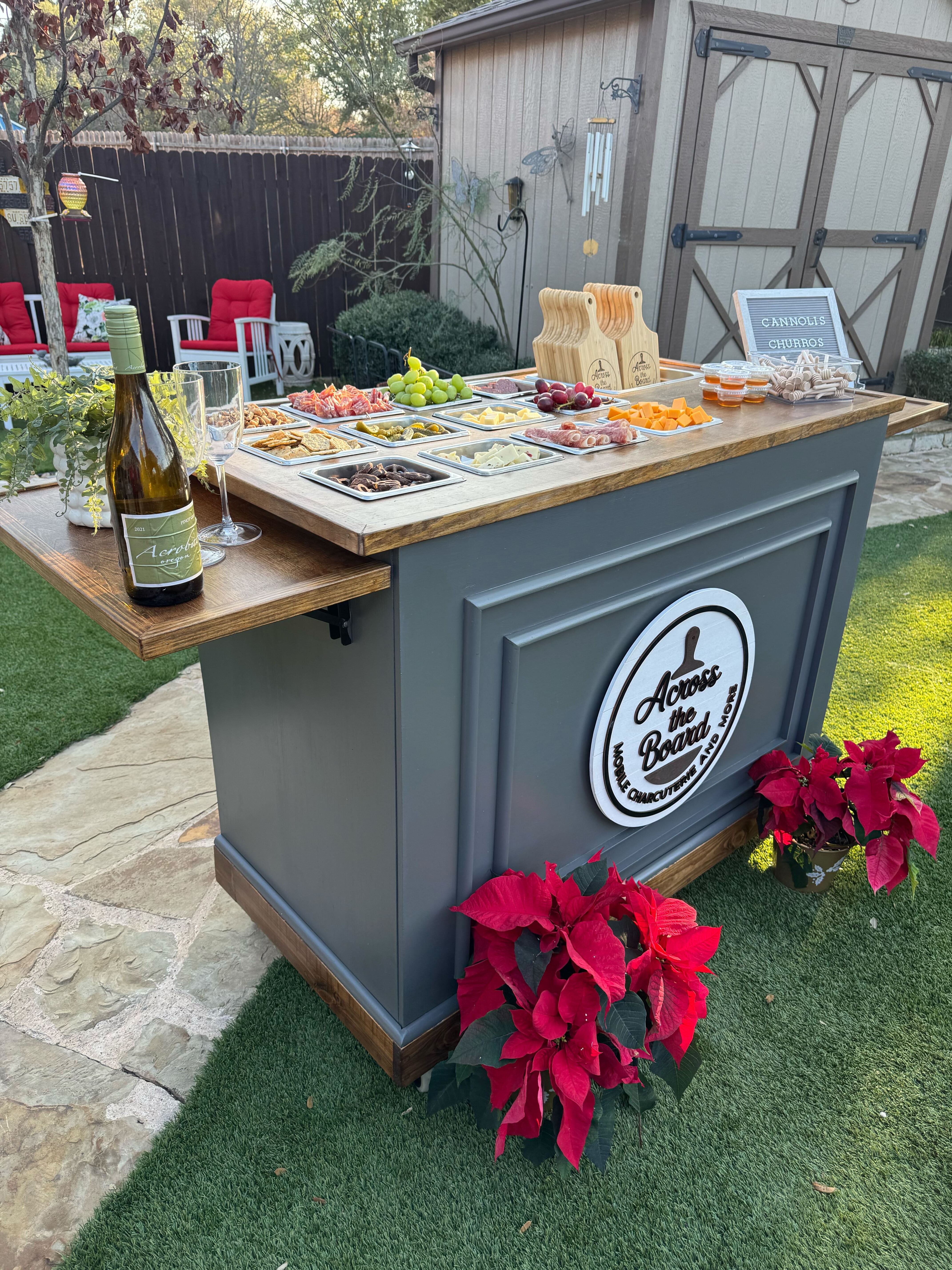 In addition to our Bottomless Mobile Charcuterie Cart, we offer: Charcuterie Cups — single-serve, ready-to-grab assortments perfect for showers, open houses, corporate meetings, and events where convenience matters. Charcuterie Boards — beautifully styled boards in multiple sizes, ideal for intimate gatherings, holidays, or gifting. Grazing Tables — larger, elevated displays for events of all sizes, from small parties to large celebrations